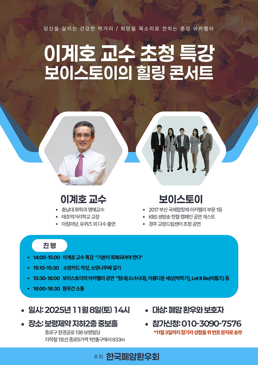[강의] 11월 8일(토)14시 이계호 교수 초청 특강 및 보이스토이 힐링콘서트 개최
